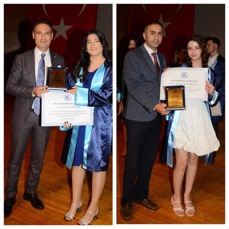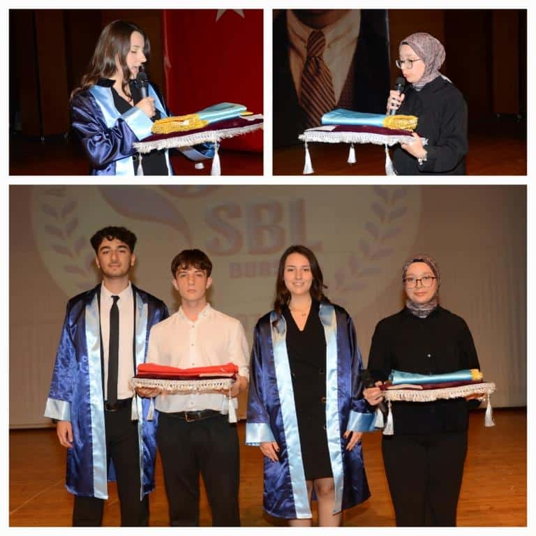 Törende hazırlıklı gruplar okul birincisi Zeynep Büyükkaya'ya plaketi Okul Müdürü Bilal Yaşar Kartal, hazırlıksız gruplar okul birincisi Sezen Ela Şimşek'e plaketi Müdür Başyardımcısı Uğur Güçlü tarafından verildi. Hazırlıklı gruplar okul ikincisi Medine Yücel, okul üçüncüsü Fatih Tosun, hazırlıksız gruplar okul ikincisi Büşra Yıldız, okul üçüncüsü Gazel Bozal oldu. Öğrencilerimize belgeleri, meslekte 30 yılı geride bırakan başöğretmenlerimiz Şule Çankaya Babacan, Dilek Bozkurt, Kadir Atman ve Halil İbrahim Ünlü tarafından takdim edildi. BTSO Ali Osman Sönmez Sosyal Bilimler Lisesi 14.dönem mezunlarımıza hayat boyu başarılar diliyoruz. Programın hazırlanmasında görev alan tüm velilerimize, öğretmen, idareci ve öğrencilerimize teşekkür ediyoruz.